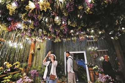 從北京世園會4號門進(jìn)入,即可體驗“東線”游覽線路,涵蓋生活體驗館、世界園藝展示區(qū)、國際館等主要場館和景區(qū)。昨天下午,北青報記者來到位于北京世園會東北部區(qū)域的生活體驗館。剛一進(jìn)門,眼前就浮現(xiàn)出一條“之”字形花田步道,參觀者可以自一樓沿坡道徐徐漫步至二樓,欣賞沿途不同主題的植物。步道兩側(cè)栽種著水仙、蝴蝶蘭、菊花等植物,還散落著不少用生活用品裝點的園藝小品,如小鞋子、小草帽、小木箱等?!拔覀兺ㄟ^這樣的布景方式,既體現(xiàn)綠色環(huán)保的生活理念,也是力求將園藝融入生活,體現(xiàn)‘愛園藝、愛生活’的美好主題。”生活體驗館館長助理樊川介紹說。