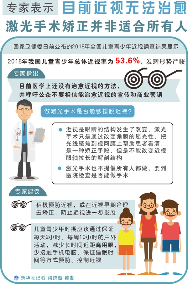 新華社北京5月3日電(記者王秉陽、溫競(jìng)?cè)A)國(guó)家衛(wèi)健委日前公布的2018年全國(guó)兒童青少年近視調(diào)查結(jié)果顯示,2018年我國(guó)兒童青少年總體近視率為53.6%,發(fā)病形勢(shì)嚴(yán)峻。有的家長(zhǎng)寄希望于近視后的治療,而且有不少商家宣稱可治愈近視。專家指出,目前醫(yī)學(xué)上還沒有治愈近視的方法,并呼吁公眾不要相信能治愈近視的宣傳和商業(yè)營(yíng)銷。