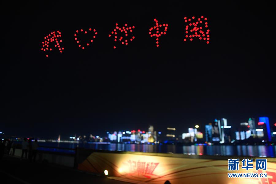 5月20日,約150架無人機(jī)空中編隊在錢塘江上空組成“我愛你中國”字樣。 當(dāng)晚,在浙江杭州錢塘江畔,城市燈光秀和約150架無人機(jī)組成的空中編隊表演交相輝映?!?20中國”“我愛你中國”“70年”……對祖國進(jìn)行的一場“深情告白”閃耀錢塘兩岸。 新華社記者黃宗治攝