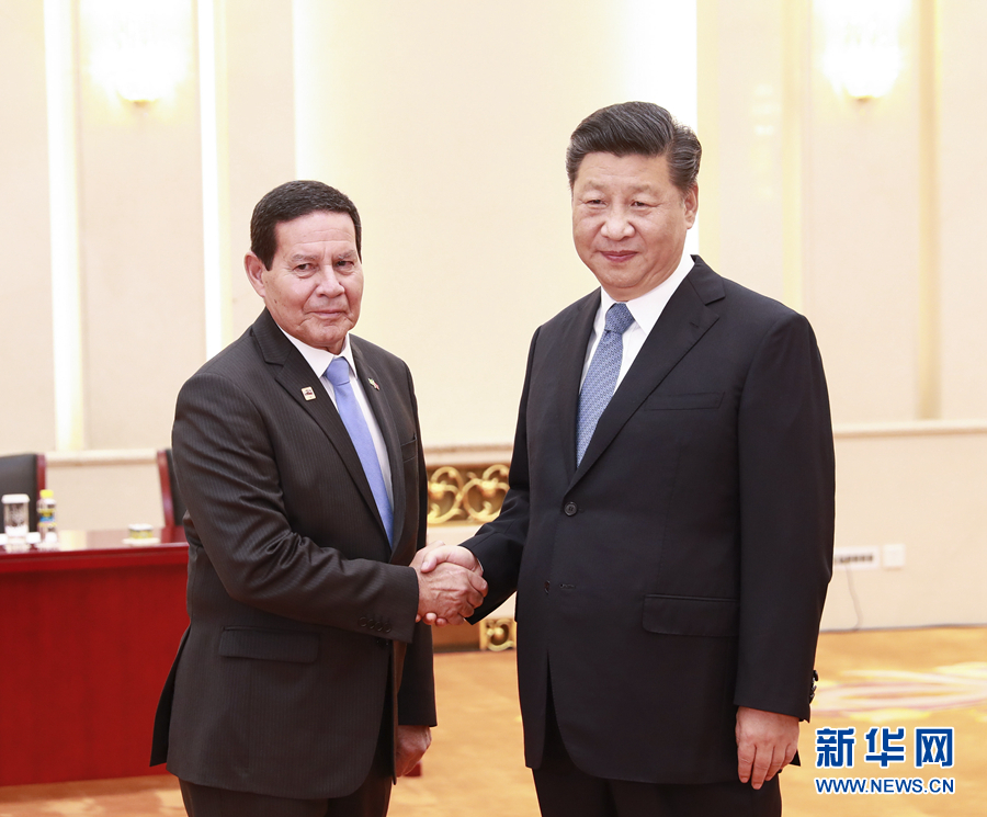 5月24日,國(guó)家主席習(xí)近平在北京人民大會(huì)堂會(huì)見巴西副總統(tǒng)莫朗。新華社記者 龐興雷 攝