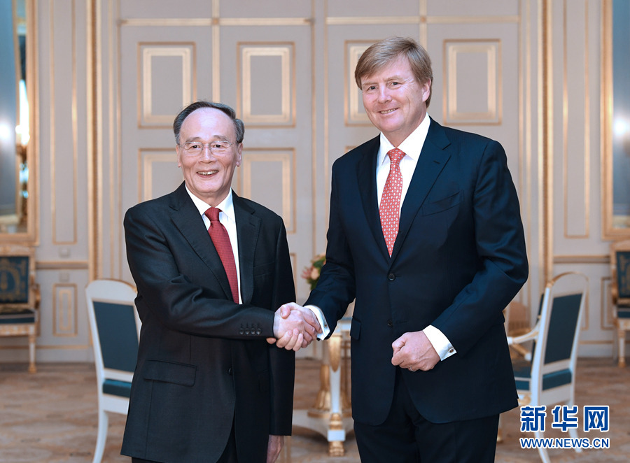 應荷蘭首相呂特邀請,國家副主席王岐山當?shù)貢r間5月28日至30日訪問荷蘭,分別會見威廉-亞歷山大國王和呂特首相。這是5月29日,王岐山在海牙會見荷蘭國王威廉-亞歷山大。 新華社記者 饒愛民 攝