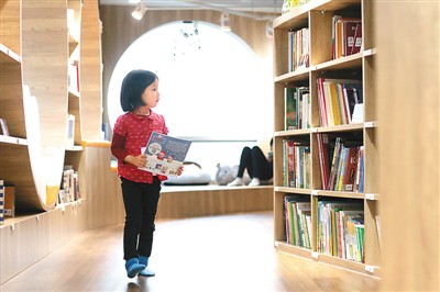 繪本圖書(shū)館里,孩子坐在家長(zhǎng)身旁,捧著手中的書(shū)讀得津津有味。場(chǎng)館設(shè)計(jì)之初,王慧瑾親自“操刀”,定下了原木簡(jiǎn)約風(fēng)格的主基調(diào),就是為了滿足家長(zhǎng)的高品質(zhì)審美需求,力圖打造一個(gè)家長(zhǎng)和孩子都可以樂(lè)在其中的悠閑天地。