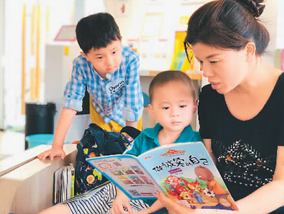 兒童圖書(shū)館內(nèi),家長(zhǎng)正在為孩子閱讀繪本。記者 孫亞慧攝