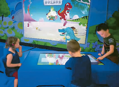 陸浩川團(tuán)隊(duì)的人機(jī)交互產(chǎn)品如今已銷(xiāo)往全球20多個(gè)國(guó)家。圖為兒童正在交互屏幕前玩得不亦樂(lè)乎。(受訪者供圖)