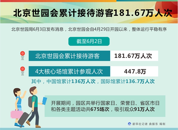 新華社北京6月3日電(記者魏夢佳、丁靜)北京世園局3日發(fā)布消息,北京世園會自4月29日開園以來,整體運行平穩(wěn)有序。截至6月2日,北京世園會累計接待游客181.67萬人次,4大核心場館累計參觀人次達(dá)447.8萬。