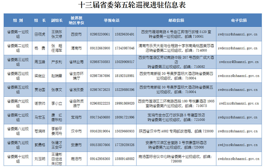 根據(jù)安排,省委巡視組將在被巡視地區(qū)、單位工作1個(gè)月左右。巡視期間設(shè)值班電話、郵政信箱、電子郵箱等,巡視組受理信訪時(shí)間截止到2019年6月30日。省紀(jì)委監(jiān)委信訪舉報(bào)受理電話(029—12388)、信箱(西安市雁塔區(qū)雁塔路南段十號陜西省紀(jì)委監(jiān)委信訪室)和網(wǎng)上舉報(bào)窗口(http://shaanxi.12388.gov.cn),同步受理涉及秦嶺生態(tài)環(huán)境保護(hù)的信訪舉報(bào)。根據(jù)秦嶺生態(tài)環(huán)境保護(hù)專項(xiàng)巡視工作要求,省委巡視組主要受理反映被巡視地區(qū)和單位秦嶺生態(tài)環(huán)境保護(hù)方面的問題和線索。對不屬于這次專項(xiàng)巡視受理范圍的信訪問題反映,將按規(guī)定轉(zhuǎn)交被巡視地區(qū)或單位和有關(guān)部門認(rèn)真處理。