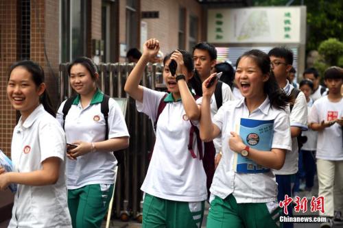 資料圖:6月8日,廣州華師附中考點,考生在考試結(jié)束后輕松走出考場。中新社記者 姬東 攝