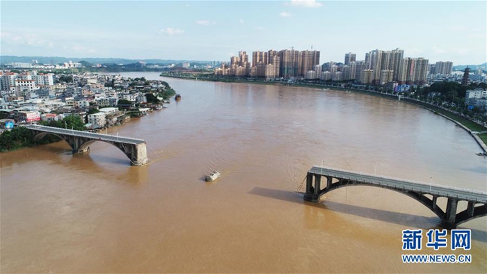 6月14日,搜救船只在東江大橋下游搜尋下落不明人員。新華社記者 田建川 攝