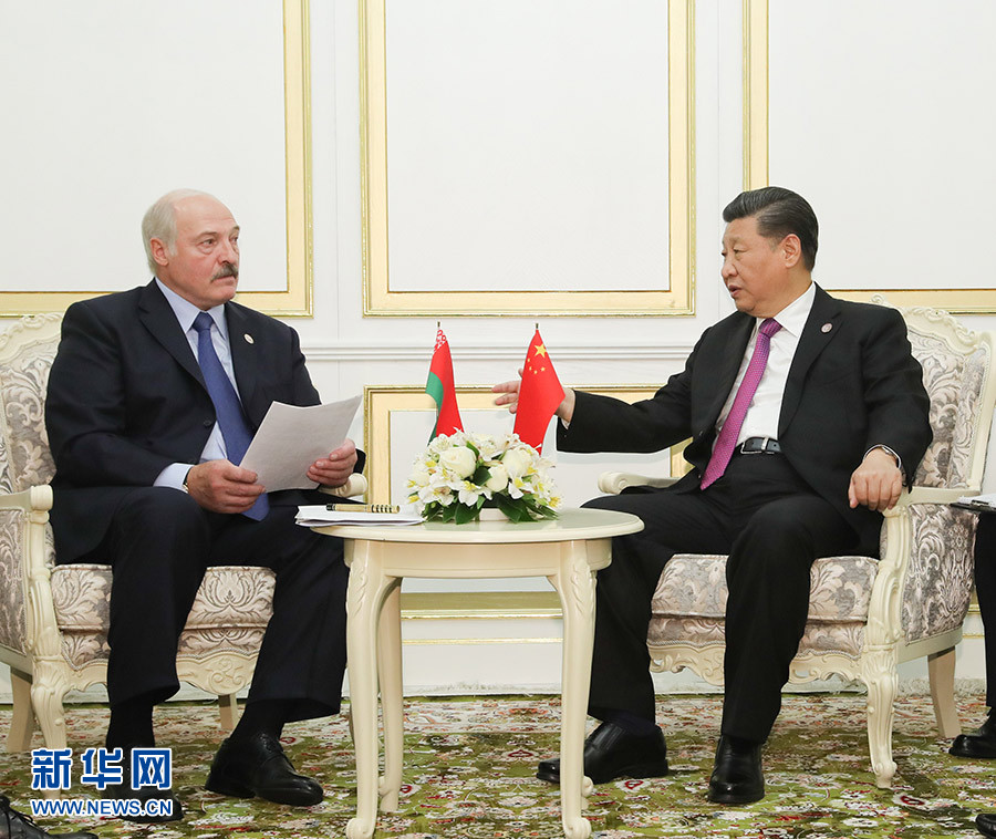 6月14日,國(guó)家主席習(xí)近平在比什凱克會(huì)見白俄羅斯總統(tǒng)盧卡申科。 新華社記者 丁林 攝