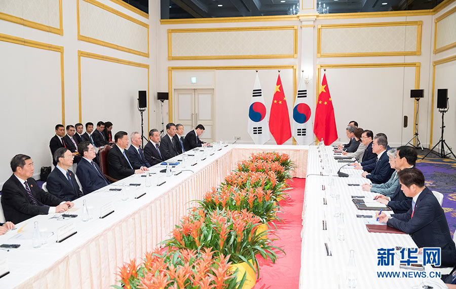 習近平指出,加強中韓友好合作符合歷史潮流,也是兩國人心所向。中方愿同韓方堅持以誠相待,努力實現合作共贏,推動兩國關系不斷向前發(fā)展,并為朝鮮半島和地區(qū)和平穩(wěn)定作出貢獻。雙方要保持各層次溝通,把穩(wěn)雙邊關系發(fā)展大方向。要把握共建“一帶一路”機遇,加快中韓自由貿易協定第二階段談判,不斷擴大貿易、科技、財經、環(huán)保等領域合作。要積極開展人文交流,鞏固中韓民間友好。中韓合作完全是互利雙贏的,不應該受到外部壓力影響。希望韓方繼續(xù)重視、妥善處理好兩國間有關問題。雙方要加強在聯合國、二十國集團等多邊框架內的協調,共同反對保護主義,支持多邊主義和自由貿易體制,推動構建開放型世界經濟。