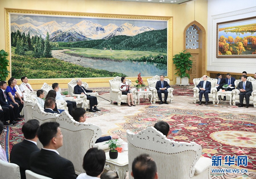 6月28日,中共中央政治局常委、全國政協(xié)主席汪洋在北京會見臺灣兩岸和平發(fā)展論壇榮譽(yù)顧問高金素梅率領(lǐng)的臺灣民意代表和少數(shù)民族參訪團(tuán)。 新華社記者 申宏 攝