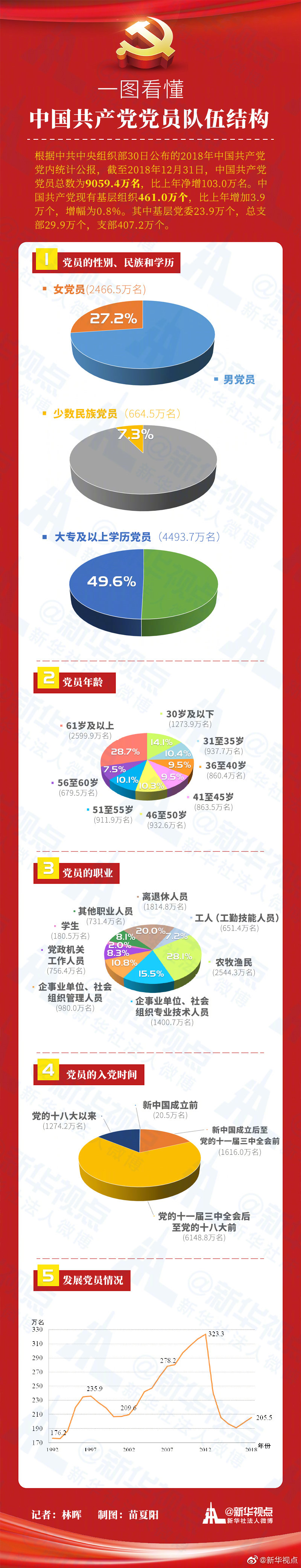 ???中國(guó)共產(chǎn)黨隊(duì)伍穩(wěn)步壯大:黨員9059.4萬(wàn)名 基層黨組織461.0萬(wàn)