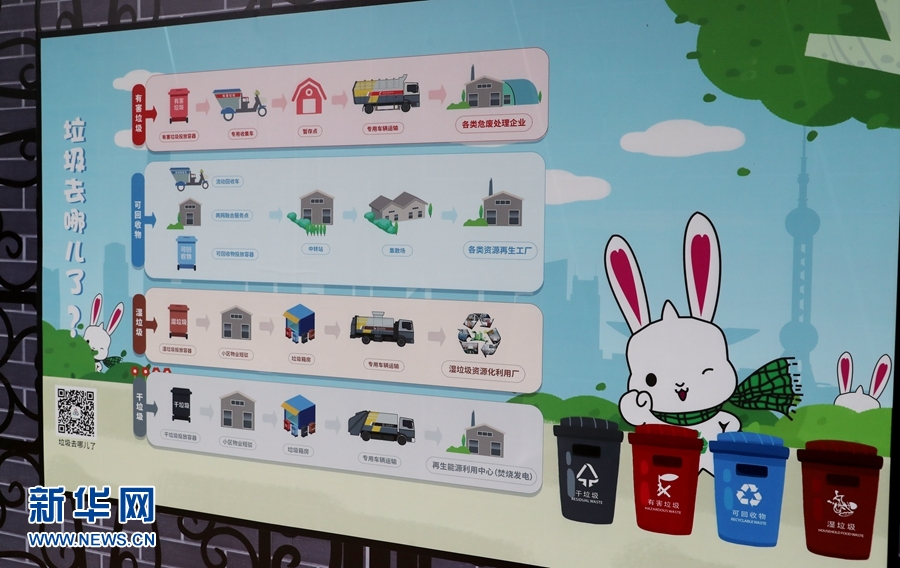 這是虹口區(qū)嘉興路街道“宇泰景苑”小區(qū)的垃圾分類宣傳墻(6月24日攝)。 新華社記者 方喆 攝