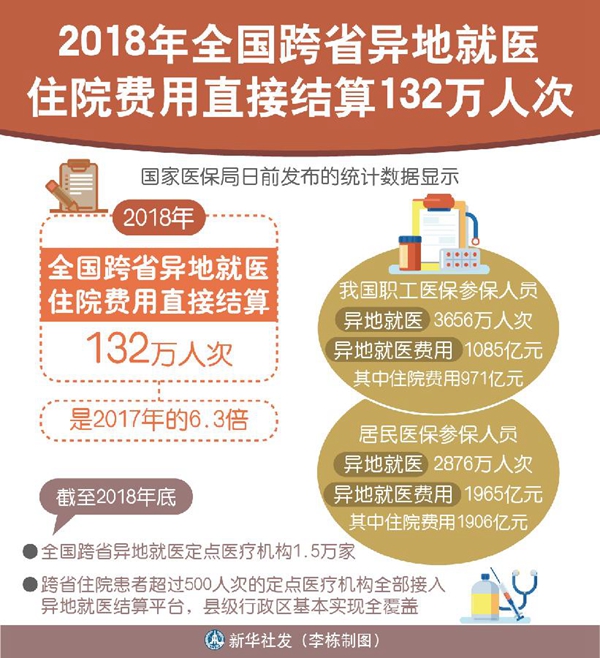數(shù)據(jù)顯示,2018年,我國職工醫(yī)保參保人員異地就醫(yī)3656萬人次,異地就醫(yī)費用1085億元,其中住院費用971億元;居民醫(yī)保參保人員異地就醫(yī)2876萬人次,異地就醫(yī)費用1965億元,其中住院費用1906億元??缡‘惖鼐歪t(yī)直接結算政策的進一步落實和完善,將為流動人口和隨遷老人等群體提供更大便利。