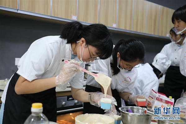 廣州市番禺區(qū)實驗中學的學生在上蛋糕烘焙課(6月3日攝)。新華社記者 李嘉樂 攝