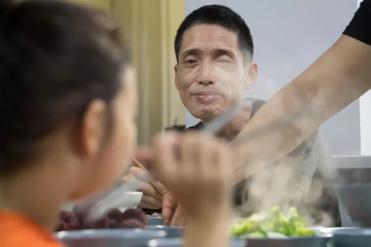 張海林“一家四口”在吃晚飯,吳元渺在飯桌上看著叫他“吳老師爸爸”的張也弛。