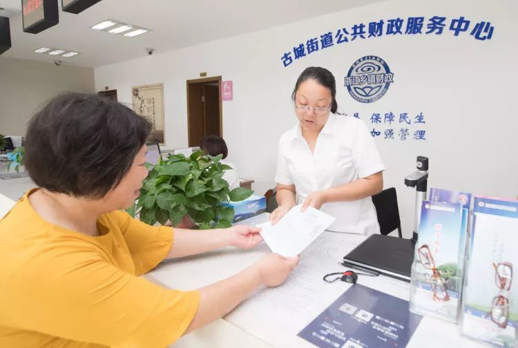 鹿城社區(qū)的書記方華芬(左)在古城街道便民服務中心為吳元渺申請一筆社會救助。