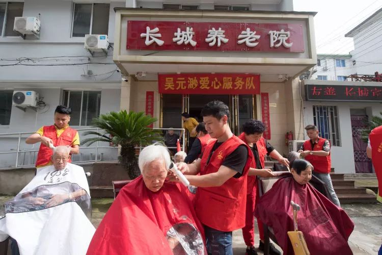 吳元渺愛心服務隊的志愿者們在臨海市一家養(yǎng)老院為老人義務理發(fā)。