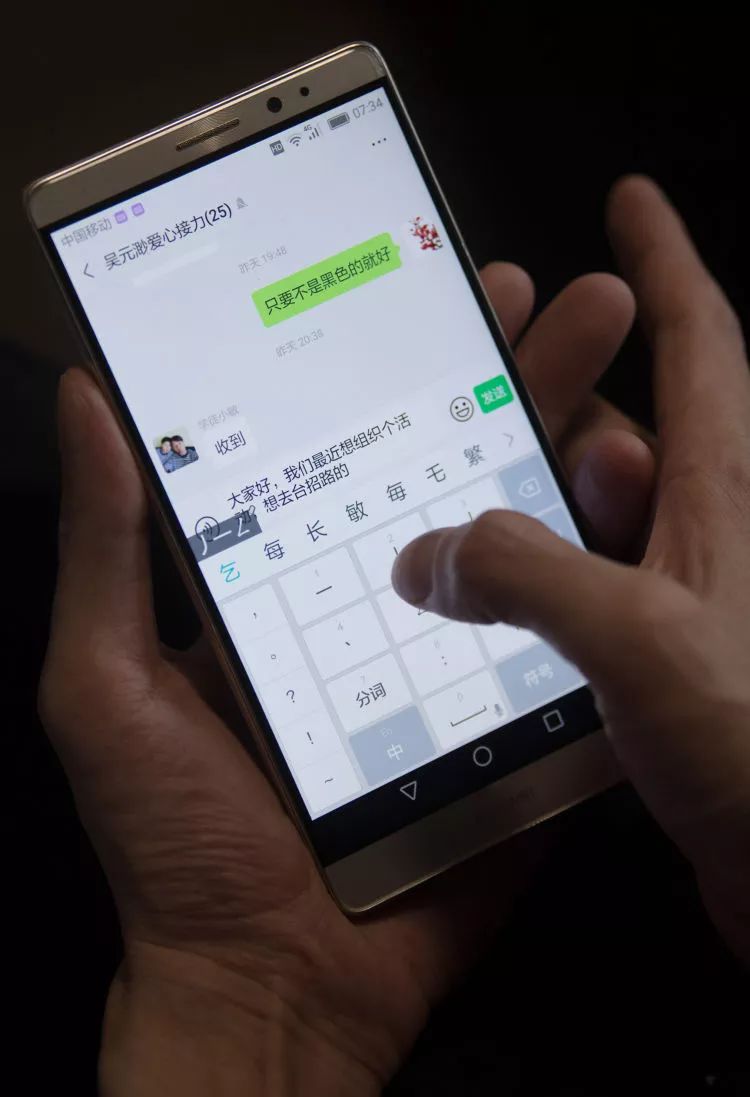吳元渺在家中給愛心服務隊的志愿者們發(fā)信息,組織一場新的公益活動。