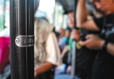 7月12日,455路公交車(chē)上的兒童購(gòu)票身高標(biāo)識(shí)。