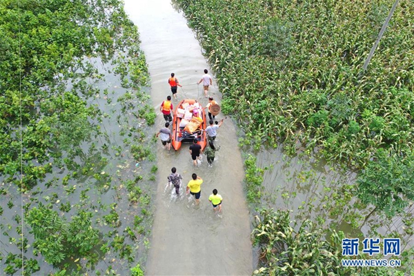 7月14日,湖南省永州市零陵區(qū)富家橋鎮(zhèn)漁池頭村發(fā)生洪澇災(zāi)害,有關(guān)部門迅速展開救援。新華社發(fā)(陳思汗 攝)
