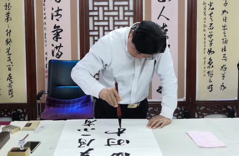朱時華12歲開始學(xué)習(xí)書法,完成的第一幅作品便是這句詩詞?!爱?dāng)看到習(xí)總書記在講話中引用這個詩句,我心里一顫,仿佛受到一種強(qiáng)烈感召。小時候耳熟能詳?shù)木渥?,從總書記口中說出,更有了新時代的非凡意義?!睆哪莻€時候開始,朱時華就特別留意新聞報道,認(rèn)真學(xué)習(xí)習(xí)總書記的每次重要講話。他時常感嘆于習(xí)總書記治國理政、運(yùn)籌帷幄之高深精妙,欽佩于習(xí)總書記賦予一些歷史典故的嶄新時代意義?!傲?xí)總書記的講話,特別是引用這些古典名句,為全國人民帶來習(xí)習(xí)清風(fēng)?!敝鞎r華說。