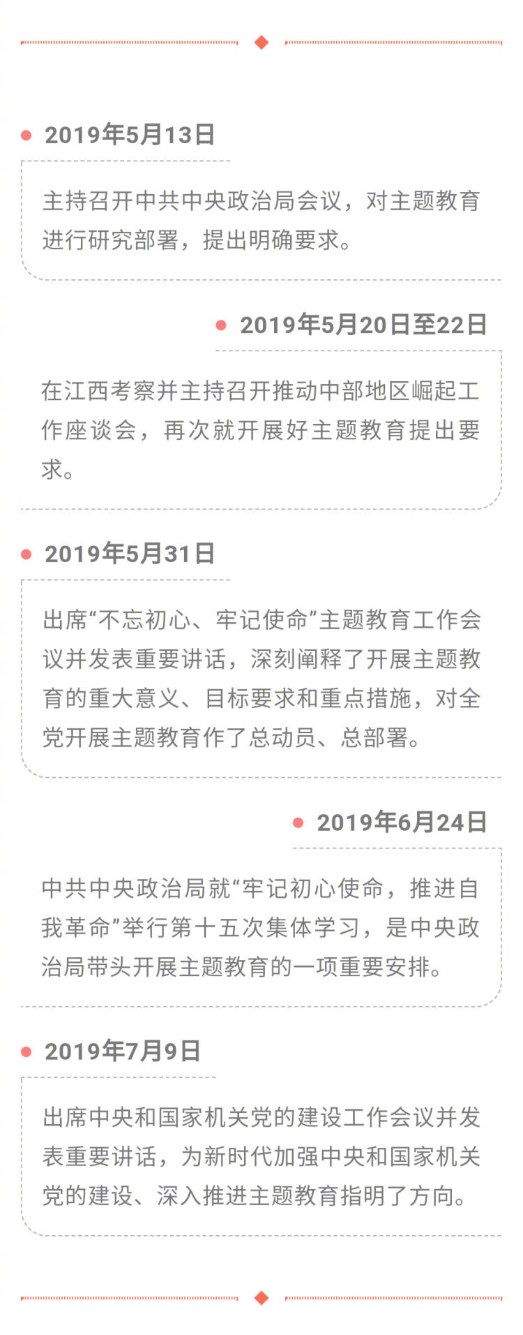 ——今年是新中國成立70年,中國共產(chǎn)黨成立也即將100年,開展這次主題教育,就是要好好梳理一下我們黨的初心是什么、使命是什么,有沒有私心雜念。