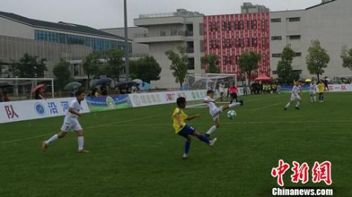 小球員們在綠茵場上你爭我搶?!$娚?攝
