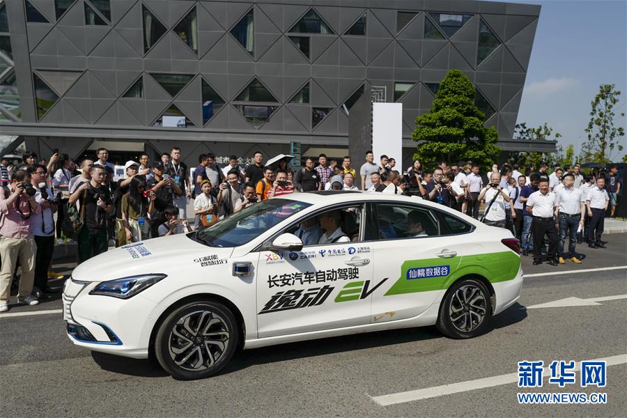 國內(nèi)首個5G自動駕駛公共服務平臺暨5G自動駕駛開放道路場景示范運營基地在重慶投入使用。這是長安汽車的一臺L4級自動駕駛汽車在啟動儀式現(xiàn)場進行演示(2019年7月26日攝)。新華社記者 劉潺 攝