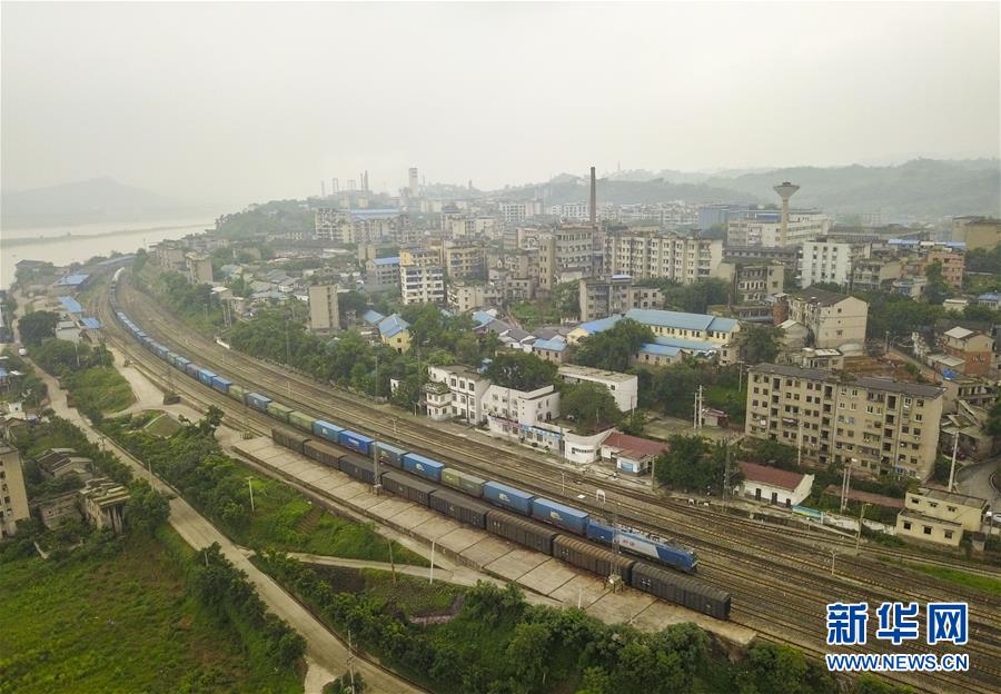 一列貨運列車經(jīng)過成渝鐵路銅罐驛站(2019年6月11日無人機拍攝)。新華社記者 劉潺 攝