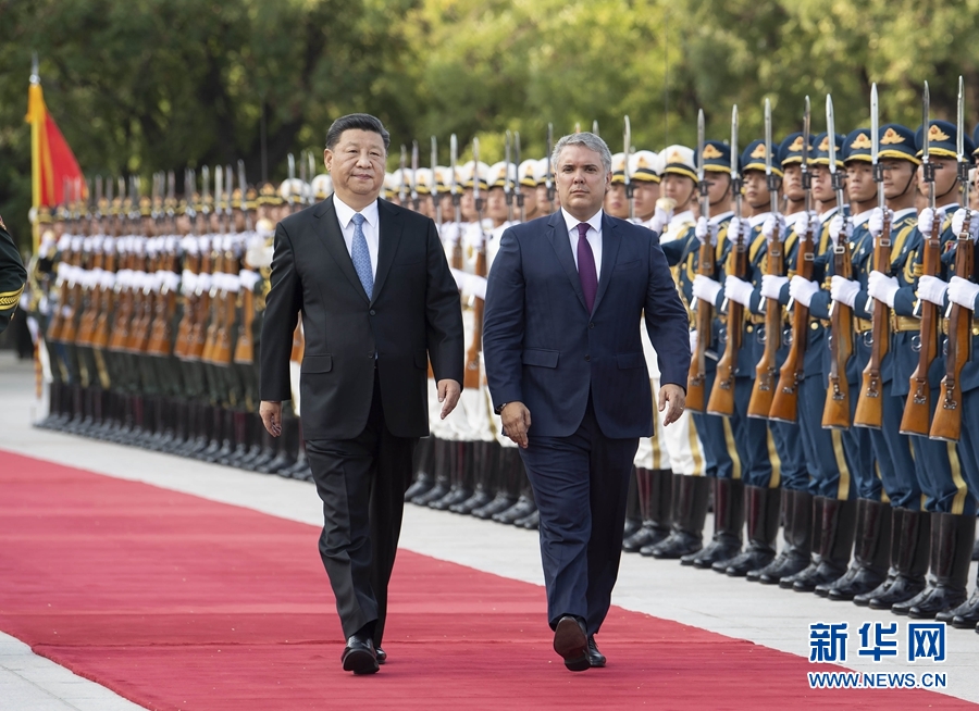 7月31日,國家主席習(xí)近平在北京人民大會堂同哥倫比亞總統(tǒng)杜克舉行會談。這是會談前,習(xí)近平在人民大會堂東門外廣場為杜克舉行歡迎儀式。 新華社記者丁海濤攝