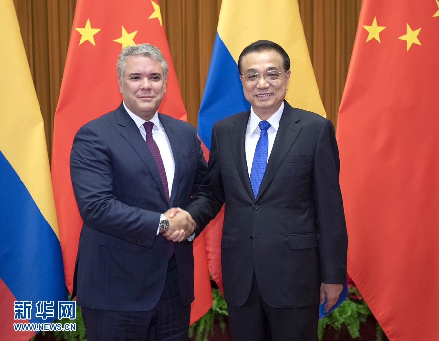 7月31日,國務(wù)院總理李克強在北京人民大會堂會見來華進行國事訪問的哥倫比亞總統(tǒng)杜克。 新華社記者 李濤 攝