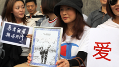8月10日,考察隊隊員向親屬揮手告別。新華社記者張旭東攝