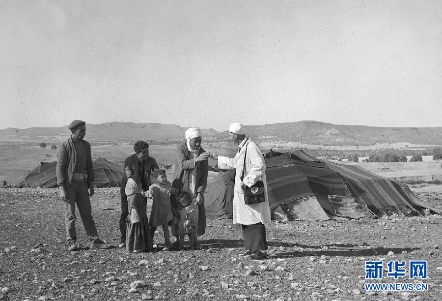 這張1965年的資料照片顯示,中國援阿醫(yī)生(右一)在阿爾及利亞賽伊達(dá)省為牧民診治。新華社發(fā)(王南生 攝)