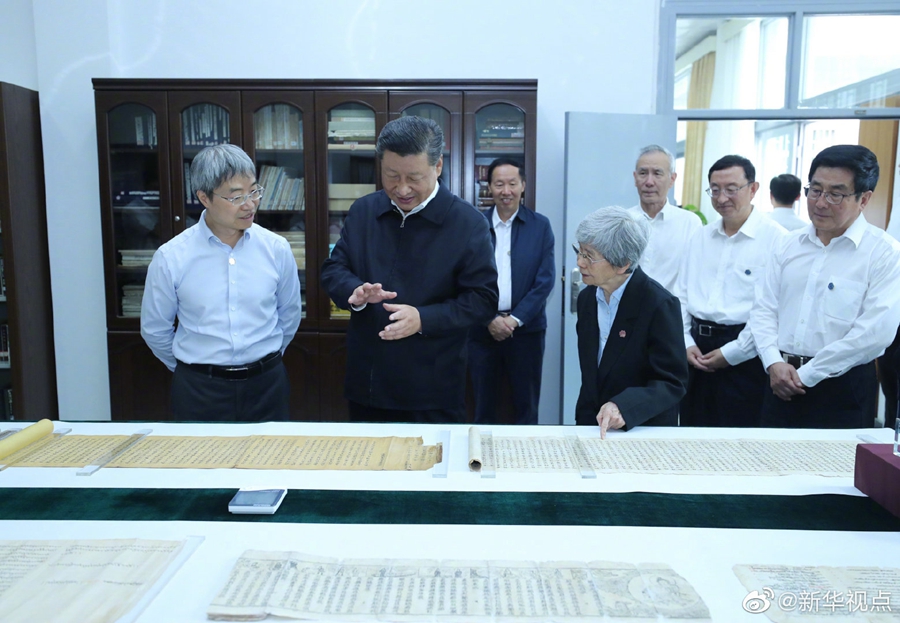 習(xí)近平總書(shū)記19日下午來(lái)到敦煌研究院,察看珍藏文物和學(xué)術(shù)成果展示,并同有關(guān)專家、學(xué)者和文化單位代表座談。(文字:張曉松、朱基釵 攝影:鞠鵬、謝環(huán)馳)