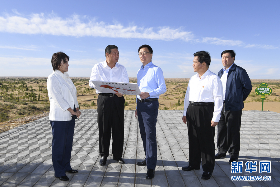 8月26日至27日,中共中央政治局常委、國務院副總理韓正到內(nèi)蒙古自治區(qū)鄂爾多斯市,就庫布其沙漠防沙治沙和生態(tài)建設(shè)情況進行調(diào)研。這是8月27日,韓正來到位于庫布其沙漠腹地的沙峰綠谷,實地查看科技手段治沙成果。新華社記者 張領(lǐng) 攝