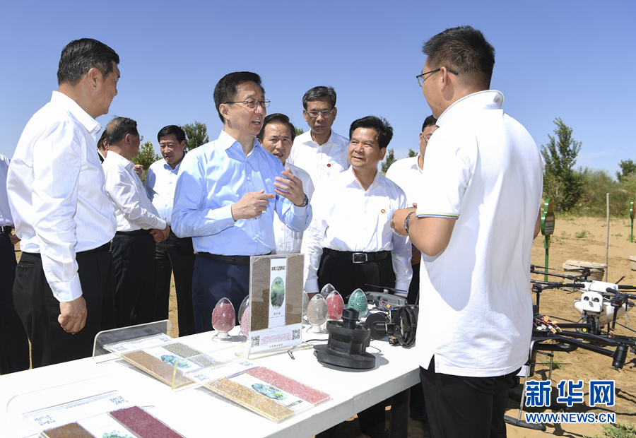 8月26日至27日,中共中央政治局常委、國務院副總理韓正到內(nèi)蒙古自治區(qū)鄂爾多斯市,就庫布其沙漠防沙治沙和生態(tài)建設(shè)情況進行調(diào)研。這是8月27日,韓正在那日沙科技植樹區(qū),考察運用技術(shù)創(chuàng)新植樹治沙工作開展情況。新華社記者 張領(lǐng) 攝