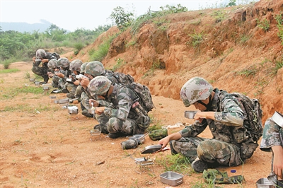 那天,某營組織20公里戰(zhàn)斗體能訓(xùn)練,告別以往“埋鍋造飯”傳統(tǒng),采取模塊化飲食保障,利用簡易爐具對真空包裝食品進(jìn)行加熱后食用……官兵的思維和行動都在轉(zhuǎn)變。