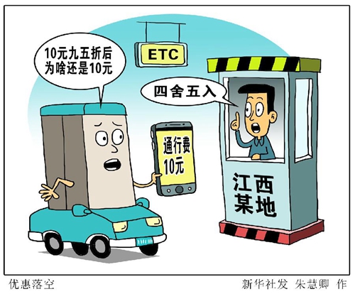 新華社南昌9月8日電(記者李美娟)為積極推動(dòng)ETC安裝使用,為取消高速公路省界收費(fèi)站創(chuàng)造條件,交通運(yùn)輸部今年5月印發(fā)《關(guān)于大力推動(dòng)高速公路ETC發(fā)展應(yīng)用工作的通知》,明確要求自2019年7月1日起,嚴(yán)格落實(shí)對(duì)ETC用戶(hù)不少于5%的車(chē)輛通行費(fèi)基本優(yōu)惠政策。但在江西,ETC用戶(hù)10元通行費(fèi)打完九五折后又被“四舍五入”成10元。國(guó)務(wù)院第七督查組日前對(duì)這項(xiàng)惠民政策進(jìn)行了實(shí)地督查。