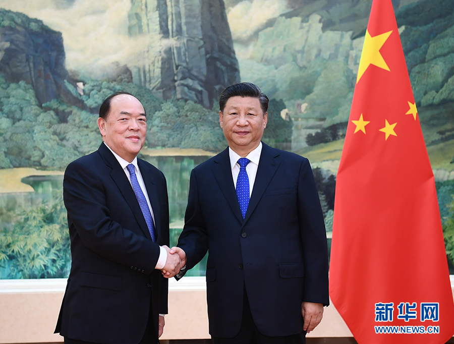 9月11日,國(guó)家主席習(xí)近平在人民大會(huì)堂會(huì)見新當(dāng)選并獲中央政府任命的澳門特別行政區(qū)第五任行政長(zhǎng)官賀一誠(chéng)。 新華社記者 謝環(huán)馳 攝