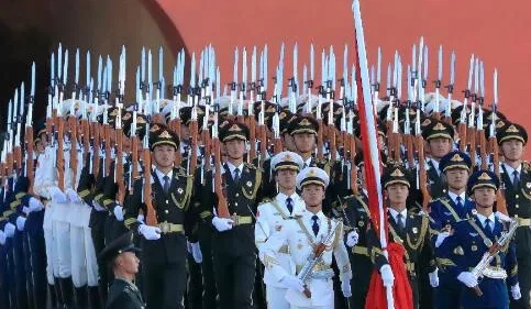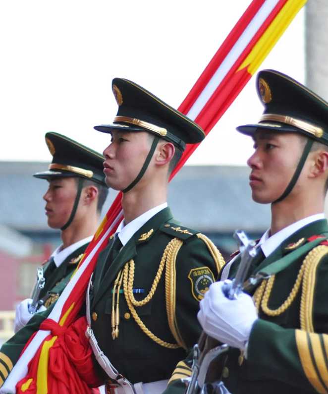 國旗護(hù)衛(wèi)隊(duì)在護(hù)送國旗走向升旗臺(tái)