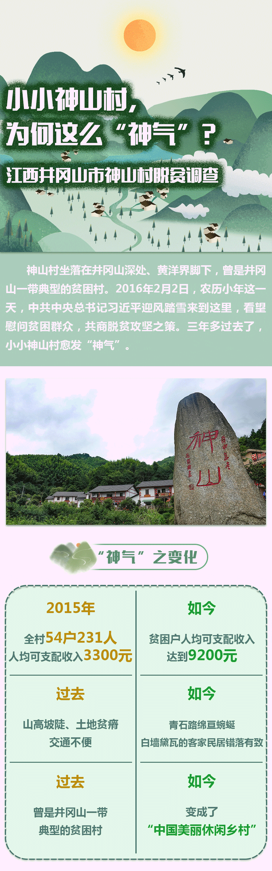 小小神山村,像這樣的故事還很多。在跨越時(shí)空的井岡山精神鼓舞下,神山村正闊步行進(jìn)在新時(shí)代鄉(xiāng)村振興的大路上,必將書寫更多新的“神氣”故事。