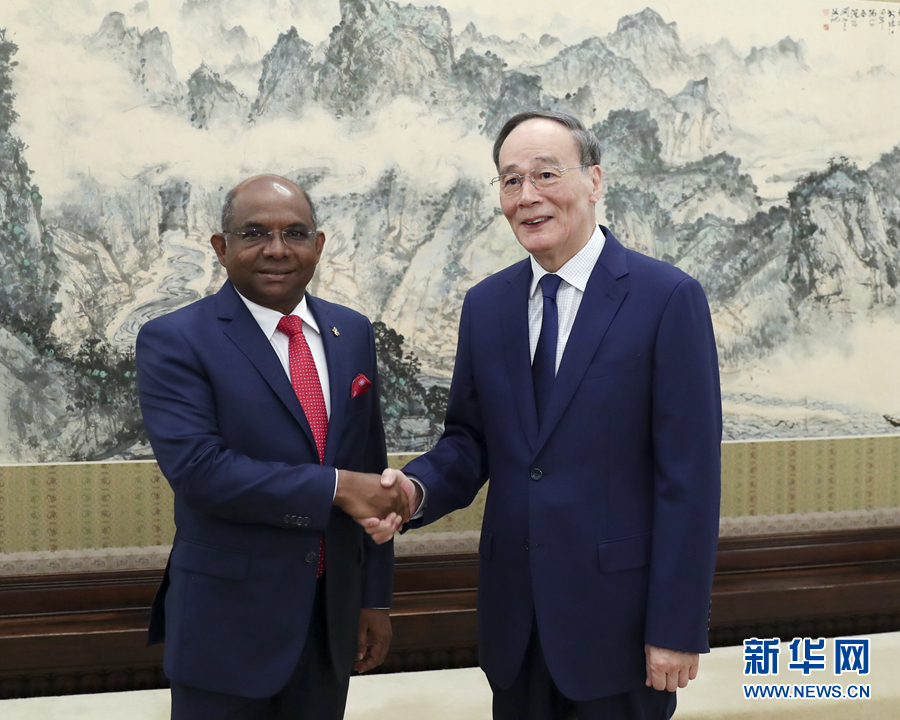 9月19日,國家副主席王岐山在北京中南海會見馬爾代夫外長沙希德。 新華社記者 丁海濤 攝