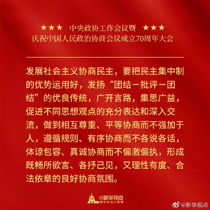 金句來了!習(xí)近平在中央政協(xié)工作會(huì)議暨慶祝中國人民政治協(xié)商會(huì)議成立70周年大會(huì)上的講話金句?? ?????
