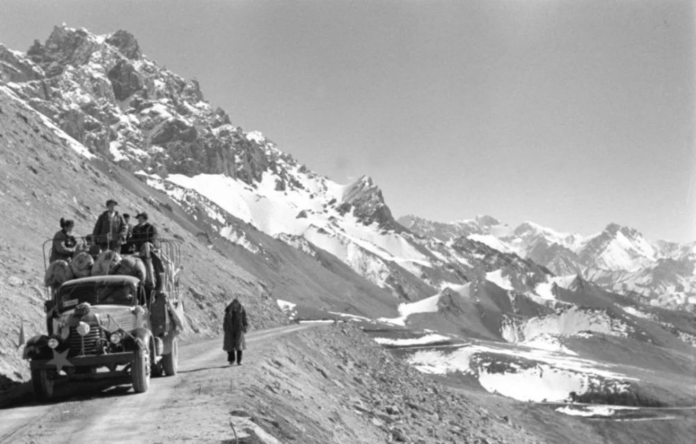 1957年12月17日,汽車行駛在從新疆葉城到西藏阿里的新(新疆)藏(西藏)公路。(新華社記者王安攝)