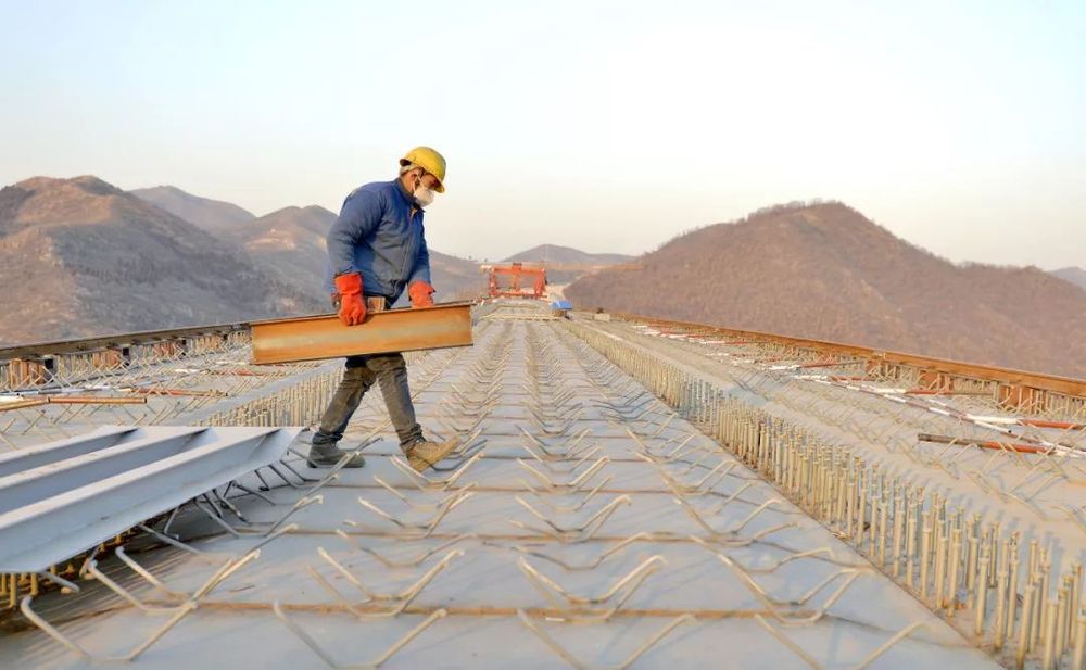 2018年1月12日,河北交投集團(tuán)建設(shè)工人在太行山高速公路河北沙河三號橋施工。(新華社記者朱旭東 攝)
