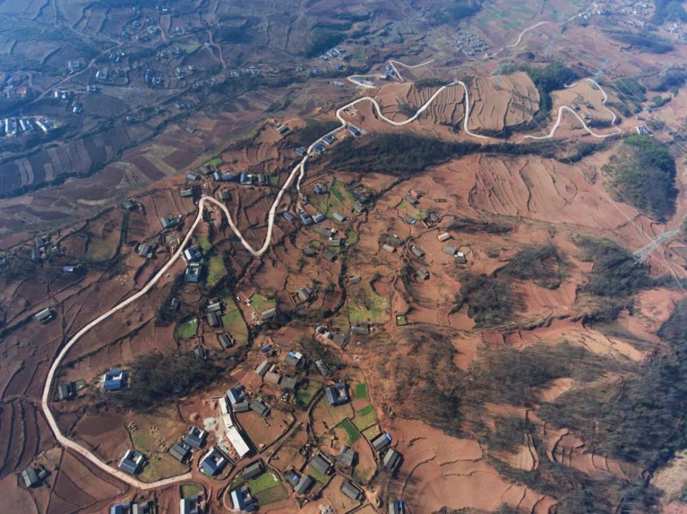 2017年2月12日,涼山彝族自治州美姑縣九口鄉(xiāng)四峨吉村6.3公里道路硬化項(xiàng)目從空中看來格外耀眼。(新華社記者劉坤 攝)
