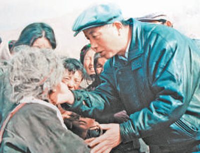 在西藏工作,孔繁森深深愛上了這片壯麗、神奇的高原,還有這里的人民。1988年,山東再次選派進(jìn)藏干部,孔繁森第二次赴藏工作。進(jìn)藏后,孔繁森擔(dān)任拉薩市副市長(zhǎng),分管文教、衛(wèi)生和民政工作。到任僅4個(gè)月,他就跑遍了全市8個(gè)縣區(qū)所有的公辦學(xué)校和一半以上的村辦小學(xué),為發(fā)展少數(shù)民族的教育事業(yè)奔波操勞;為結(jié)束尼木縣續(xù)邁鄉(xiāng)等3個(gè)鄉(xiāng)群眾易患大骨節(jié)病的歷史,他多次爬到海拔近5000米的山頂水源處采集水樣,幫群眾解決飲水問題;在了解農(nóng)牧區(qū)缺醫(yī)少藥的情況后,他每次下鄉(xiāng)時(shí)都特地帶一個(gè)醫(yī)療箱,工作之余就給農(nóng)牧民群眾認(rèn)真地聽診、把脈、打針……
