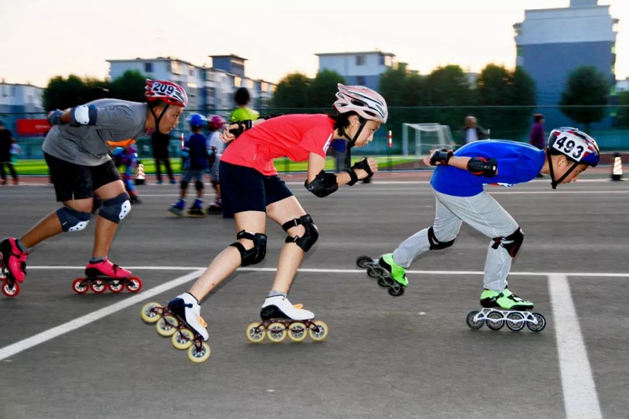 8月31日,遼寧沈陽。少年們在進行輪滑訓(xùn)練,為冬季上冰打基礎(chǔ)。作者:周朋