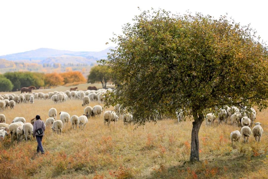 9月24日,內(nèi)蒙古赤峰。牧民在烏蘭布統(tǒng)草原放羊。作者:瑞鐘